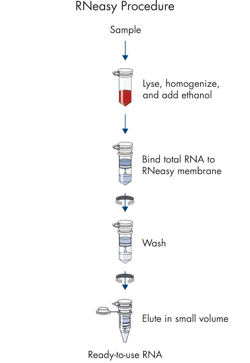 RNeasy系列試劑採用了上述特殊的高鹽緩衝液,使得大於200nt的RNA可以與試劑盒中的矽膠膜結合。